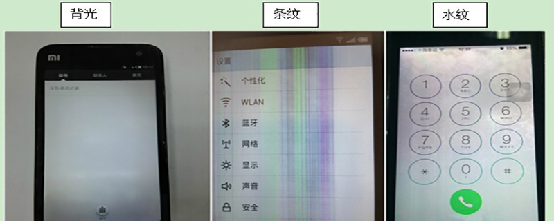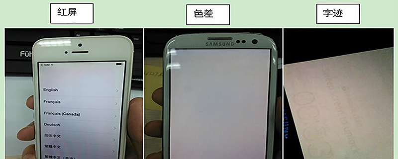 (2)颜色问题:主要有背光、有色差、水纹、红屏、黑斑、黄斑、闪烁等。以上情况,都是内屏受损,即屏幕显示出了问题,出现这种问题的屏幕,都是内屏受损了。